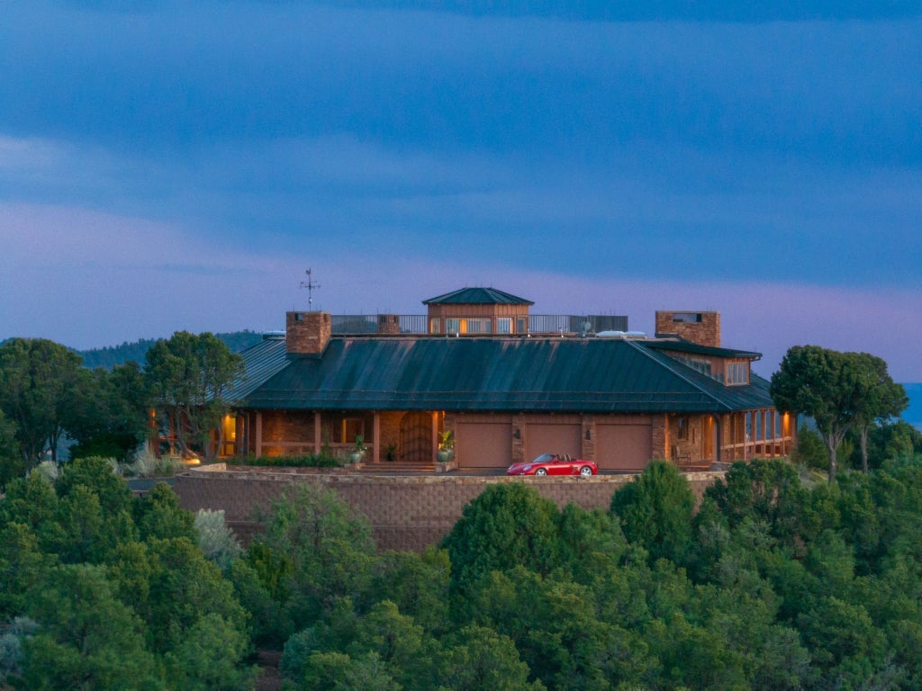 The home features a unique octagonal design with soaring ceilings and clerestory windows that bring the sky, sun, and moon into your living area. Hence, the estate's name: Sol y Luna, where the sun and moon kiss the earth. Five charming fireplaces, including a classic Rumford, add warmth and character to the living spaces. A versatile upper floor room is ideal for a game room, staff quarters, a home theater, or a gym. Additionally, there are two living areas suitable for an office or small gatherings. The entire property is surrounded by a covered portal, providing a seamless indoor-outdoor living experience, perfect for enjoying the views from anywhere.