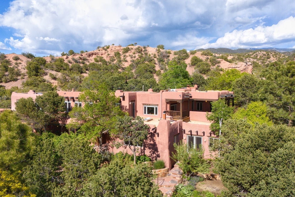 Nestled on an expansive 26.93-acre lot that backs directly to the SF National Forest, this magnificent estate offers an unparalleled blend of luxury, privacy, & natural beauty. With meticulously crafted architectural details & high-end amenities, this property is a sanctuary for those seeking a serene yet sophisticated lifestyle. Experience tranquility in the private courtyards offering intimate outdoor spaces for relaxation & entertainment. Enjoy the mesmerizing views of the surrounding landscapes from the huge deck, perfect for dining, gatherings, or simply soaking in the beauty of nature. The estate has several spacious living areas, each thoughtfully designed to accommodate a range of activities & gatherings. The chef's kitchen is a culinary dream, with top-of-the-line appliances & ample space for preparing gourmet meals. Elegant plaster walls add a touch of classic NM charm & sophistication, while custom wood doors throughout the estate provide a warm & inviting atmosphere. Intricate ironwork adds an artistic and unique element to the property’s design, & traditional viga ceilings contribute to the authentic SW aesthetic. For the equestrian enthusiast, the property includes 4 barns with over 20 stalls, offering state-of-the-art facilities for horse care & training. 10 separated turnout areas & your own entrance to the forest with miles of trails! The lush, meticulously maintained landscaping enhances the property’s natural beauty, creating a vibrant & serene environment. There is a separate 2 bed/2 bath guest house with its own garage, offering privacy & comfort for guests, caretakers extended family members.This estate offers a rare opportunity to own a piece of paradise, combining luxurious living with the privacy & natural splendor of New Mexico. Sitting close to Santa Fe you are a short drive to restaurants, galleries, & museums but far enough away to truly enjoy the privacy of a mountain compound. https://www.youtube.com/watch?v=Lh4A1MXPTEc