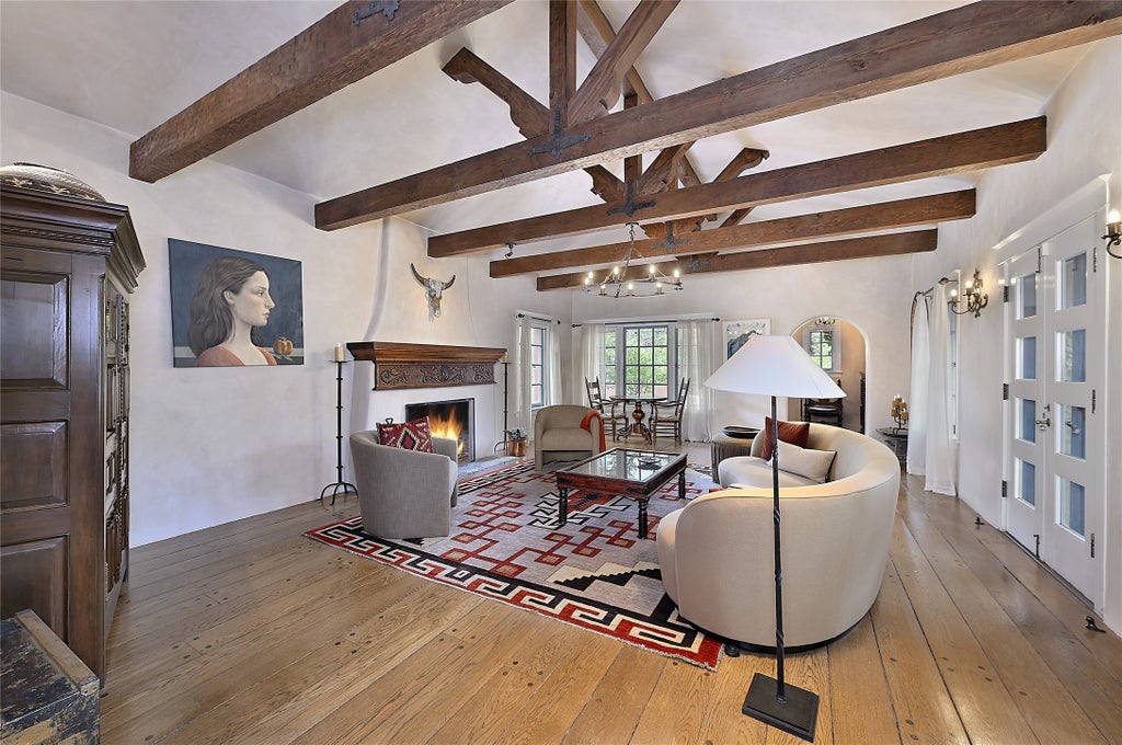 Historic Eastside meticulously renovated c.1925 Spanish style 4 bedroom 5.5 bath estate close to Canyon Road and the Plaza. One of Santa Fe's truly unique properties. Spanish tile roof, private bricked driveway, 7 fireplaces, double pane wood windows, a brick wine cellar, tasting room and large separate studio. Every major room has outdoor access. Dramatic living room and formal dining room with handmade light fixtures from Mexico provides space for special dinners and holiday entertaining. Gourmet kitchen is appointed with ceramic tile, long breakfast bar, new range/oven and refrigerator, informal dining area and kitchen garden outside. Full basement with separate entrance with bedroom, one full bathroom and one ¾ bathroom, kitchenette with dishwasher, sink, mini fridge, mini freezer, wine tasting room and large capacity, temperature-controlled wine cellar, mechanical room, and storage. Attic access in library/hallway. Separate 323 sq. ft. studio. Covered patio with fireplace and fountain, infrared heater, and built in grill. Lush landscaping with apricot, plum, pear, cherry trees, arbor with trumpet vines, newer xeriscaping and rainwater harvesting. City water but with private well for irrigation. Security gate, 2022 privacy wall and 2-car attached garage. Rare opportunity to own a residence of such historic and cultural importance.