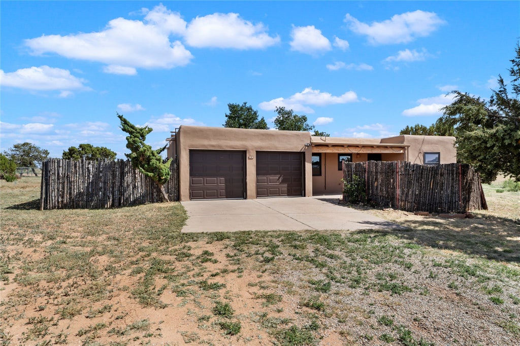 Walking distance to Eldorado School! Cheery and light Single Level home offers an open and inviting floor plan with great bedroom separation. The bedrooms feature two master suites and the third bedroom has direct access to the third bathroom. Home has wood beams in the great room and two wood burning kiva fireplaces. A portion of the garage was used to add a bathroom and closet to make a second master suite. Approx. 254 feet remains available to use as a workshop or studio, or could possibly park a small car. There are 3 exterior patio spaces to enjoy mountain views from the enclosed front patio, or sun bath off the private patio off one of the master bedrooms! Eldorado is home to miles of hiking and biking paths, thousands of acres of wilderness preserve, K-9 school, summertime pool, library, community center, shopping and dining, and a setting where you really can star gaze!