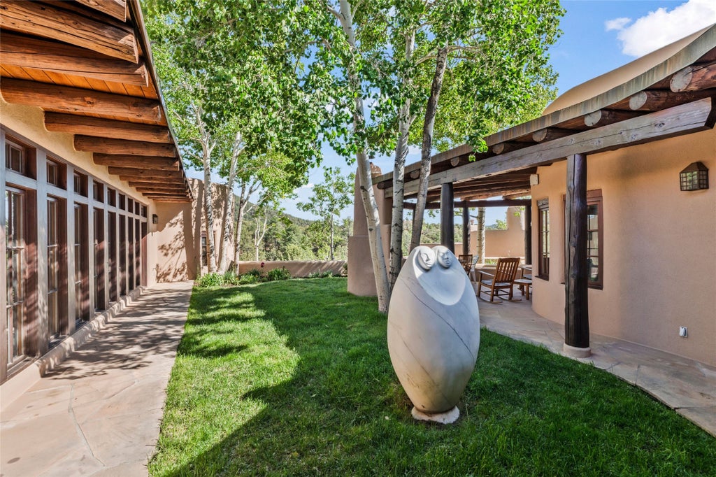 On the edge of the historic eastside, above St. John’s College, within the gated and desirable Ponderosa Ridge community, 1863 Camino de Cruz Blanca is a rare and exceptional property. Carrying a Michael Bauer-designed and a Doug McDowell-built pedigree, this prize provides a substantial 3-bedroom main house, a 2-bedroom casita, a studio, and pool on over 4-acres bordering public lands. The main house sits high above town with views to the west towards Jemez Mountains and Los Alamos, and the backyard and pool look east up at Atalaya Mountain looming above. The 4,960 sq. ft. main house and 1,172 sq. ft. casita are rich in craftsmanship and integrity, built of double adobe with classic puebloan features – large vigas, carved wood doors, flagstone, antique pine and saltillo tile floors – while having the scale to accommodate modern living. In addition, the property has a separate 275 sq. ft. room that could serve as an exercise room or artist studio. The outdoor spaces are a secluded extension of the open space beyond and achieve the balance between maximizing views and privacy. The lot provides direct access to the Atalaya and St. John’s hiking/biking trails. Still owned by the original owner, the property exudes pride of ownership. Recent improvements, completed in 2024 and 2025, include a new TPO roof, newly wrapped exterior stucco, and new heat pump minisplit heating and cooling. Two adjacent, separately deeded, buildable lots are also available for purchase separately, increasing the offering to 13 total acres. 1863 Camino de Cruz Blanca is an incredible property of great substance and character, set in a “goldilocks” location that perfectly strikes close proximity to downtown with direct connectivity to our unbounded natural setting.