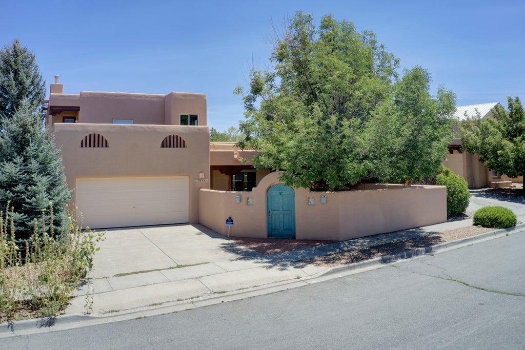 Fantastic Custom home nestled on a Stunning Park-like lot in Pueblos Del Sol, boasting over 100K in Upgrades/Updates! An Oasis in the Heart of Santa Fe! Raised Viga Beam Tongue and Groove Ceilings & Custom Kiva Fireplace in Spacious Living Area! Designer Chandelier in Open Dining Area! Chef's Delight Kitchen has updated smooth surface counter + SS Appliances/Casual Dining Area! Main Level offers 2 Bedrooms and a Gorgeous Remodeled Bath with a Huge Custom Tile shower! Upper Level has wrap-around LOFT Library with live-edge wood bookshelves! Ideal for Art studio/Home office/Work out! View deck off Loft! Luxurious Owner's Suite with Private Deck! Indulge in a SPA-like Experience in the remodeled bath! Relax in the Steam Shower with Body Jets or Linger in the Jet Tub! Upgrades Include: 2019 EE Windows and Patio Doors! 2019 Stucco!/Recent Roof! Remodeled Baths! Updated Kitchen! 2018 Blinds! 2 Mini Split Heat/AC units! 2024 Partial Paint. Stunning Professional Landscaping Designed by a Horticulturist! From the Private Courtyard to the Meandering Flagstone paths, you will be Enchanted! Beautiful SW Original Mural by local Artist! Enjoy the Soothing Stone Waterfall as you Dine on the covered Patio! EZ care Buffalo Grass! Santa Fe Charm meets Modern Comfort! Located just minutes from downtown Santa Fe, local parks, trails, and dining, this home puts you close to everything while still feeling like a private escape!