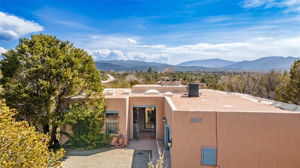 Tucked into the foothills just above the Santa Fe Plaza, this spacious and versatile home offers exceptional value in an unbeatable location! With 2,728 square feet of well-designed living space, this residence features a highly functional layout perfect for multi-generational living, guests, or home office needs. The main level offers easy living with a generous primary suite and guest bedroom, a charming living room with beamed ceilings, a cozy kiva fireplace, and sweeping mountain views. A separate formal dining area and a large country kitchen—complete with ample storage, a central island, and a sunny breakfast nook—create the ideal setting for gatherings. The attached two-car garage is conveniently located just off the kitchen. Downstairs, you'll find a private guest suite with its own bath and a spacious secondary living area with a separate exterior entrance—perfect for guests, studio space, or independent living quarters. Set on its own natural “island,” the surrounding native landscaping is maintained by the HOA, offering a low-maintenance lifestyle in a beautiful setting. Fort Marcy Park—with its fitness center, pickleball courts, and dog park—is just a short walk away, and the vibrant Santa Fe Plaza is mere minutes beyond. With a newer roof, furnace, and A/C, much of the heavy lifting has already been done. Move in and enjoy it as-is, or bring your vision to make it your own. You simply won’t find a home of this size, in this location, at this price—don’t miss this opportunity!