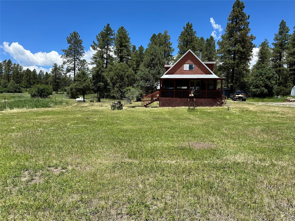 This cozy house is PRICED TO SELL located up the Canyon of County Rd. 342 just outside of Chama. This is one of the prettiest canyons in Chama. The Cabin is a 2 bedroom 2 bath house, a good size living room and a nice sized kitchen. The upstairs has two bedrooms and a Jack and Jill bathroom. The front enclosed porch can also be a bedroom if you like the openness, It also opens threw French doors to an outdoor covered patio. Their is a detached out building/carport 1600 sq feet. great for a gust who is staying, there is a bedroom and bathroom out there as well. The owner was preparing the house for himself but his plans changed. The 2.914 acres butts up to the Jicarilla Apache Nation land, so you don't have to worry about anyone building behind you. Chama is only 15 minutes away were you can do your local shopping or ride the Cumbres & Toltec Scenic Railroad that has been around since the year 1880. Pagosa springs is only an hour from here and Wolf creek Ski area is about 1.5 hrs. Santa Fe, Taos, Angle Fire and Red river ski areas are about 1.5 hrs. away. So come see how you like Chama and Check out the house we would love to have you.