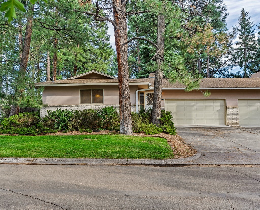 Charming Single-Level Townhouse in Downtown Los Alamos, Access to the Hidden Park, 3 Bed / 3 Bath, 2 Living Areas, 2-Car Garage, Central Air Conditioning, and More! Welcome to 1913 Spruce! This beautifully maintained home is located in Ponderosa Manor, home to a private, hidden park accessible through the residents’ back yards! The location is highly desirable, as the complex sits adjacent to the soccer field across from Bathtub Row Brewery and just a short distance away from all the downtown restaurants and brew pubs! As you enter you are greeted by updated hardwood flooring that flow into the main living area that serves as the hub of this house. The main living area includes a brick, wood-burning fireplace that will keep you warm on those crisp fall evenings. The kitchen features natural wood cabinets and includes an island with barstool seating and a prep-sink that makes preparing meals a breeze. The dining area has south-facing windows and flows into a second living area filled with natural light from the three skylights above and opens onto the stone patio surrounded by pine trees. A built-in office space is ideal for your work-from-home days. The east wing of the home includes two bedrooms, including the primary bedroom with an en-suite bathroom. A full guest bathroom is conveniently located for the guest bedroom. A second guest bedroom with an en-suite bathroom is located in the west wing addition. A two-car garage and large laundry room round out the interior of the house. The back yard patio features garden beds and a beautiful stone walkway that winds around to the side of the house. A gate leads to the hidden park maintained by the homeowner’s association, providing you with a beautiful, carefree sanctuary in the middle of downtown Los Alamos. Homes in Ponderosa Manor do not frequently hit the market, so this is your opportunity to own one of these gems. The seller plans to review offers on Tuesday, September 16, so schedule your showing today!