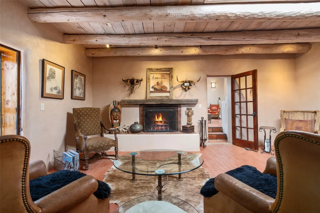 Step into a rare piece of New Mexico history with this authentic adobe home, originally built in the 1800s and beautifully renovated in 2016. Blending timeless Southwestern character with modern comforts, this 2-bedroom, 2.5-bath residence offers a truly one-of-a-kind living experience. Classic architectural details abound—hand-hewn vigas, plaster walls, nichos, brick and Saltillo tile floors, and artistically hand-painted doors showcase the craftsmanship of another era. The home’s thoughtful renovation preserved these historic elements while seamlessly integrating updates for today’s lifestyle. The gourmet kitchen is a centerpiece, featuring a farmhouse sink, honed marble countertops, Wolf range/oven, Fisher & Paykel refrigerator, KitchenAid dishwasher, and custom cabinetry. Outside, a charming courtyard offers stunning views over the historic village of Galisteo, creating a serene and inspiring retreat. Significant historic ruins on the property add depth and authenticity, connecting you to the story of the land. This home is a rare opportunity to own a piece of Galisteo’s rich past while enjoying the comforts of a tasteful, modern renovation.