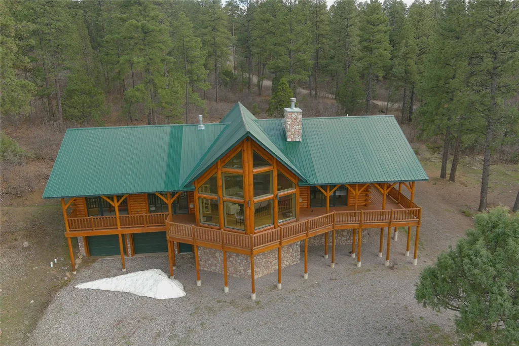 Situated within the prestigious Landings of Chama Development, this remarkable home, designed by Golden Eagle Log Homes, showcases exquisite craftsmanship and attention to detail. Privacy is paramount in this secluded retreat, as it is situated in a tranquil and private setting. Access to the property is through gated entry, ensuring a secure and exclusive environment for residents and their guests.