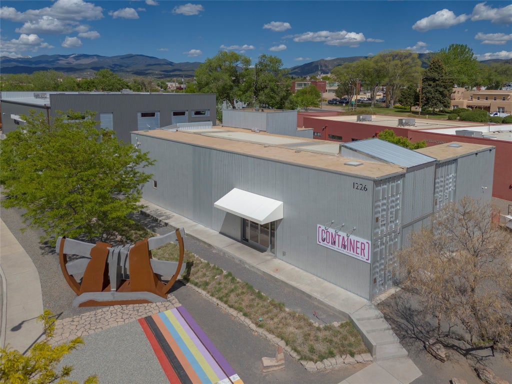 CONTAINER is a unique steel building in the Baca Street Railyard District consisting of repurposed shipping containers retrofitted to operate today what is a contemporary art center and gallery. Consisting of approximately 5,182 square feet, on two levels, an interior staircase as well as an elevator, adjacent to free city/public parking with six designated and two handicap parking spaces, an interior residential rental unit, substantial storage areas, 3 bathrooms total, and two kitchen areas with one each in the residential portion of the building. The land is leasehold with substantial time and numerous options in place.