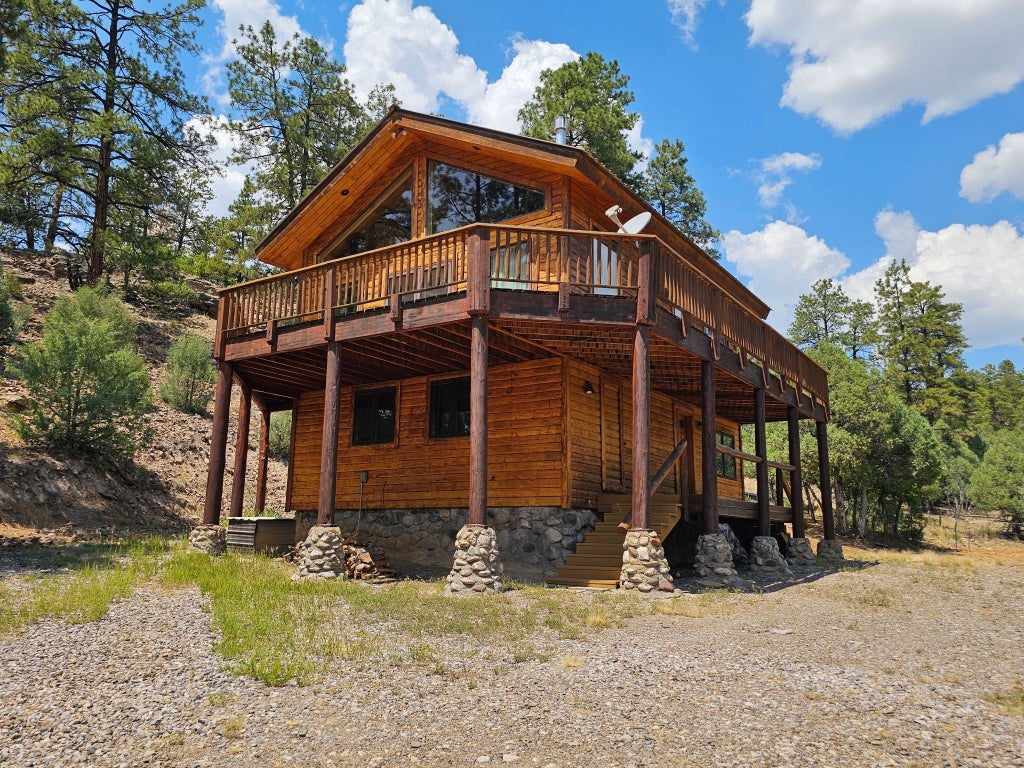 Beautiful well kept custom built log home with views of Heron lake. Property is located in the Laguna Vista sub division on 4.08 acres at the end of the road. Private access to the State Park and to Willow Creek which is the inlet to Heron Lake. Two bedrooms with their own bathrooms downs stairs. Upstairs Livingroom, Kitchen, Dining area, Breakfast bar, and a 1/2 bath. Nice Tile flooring with beautiful woodwork,solid wood door package. Wood burning stove for the cold nights. Huge southern facing windows for those stunning views of Heron Lake and the surrounding mountains. Nice deck up stairs for those summer bar b ques or just a cool place to hang out and enjoy life. This is a one owner home and has been used as a vacation summer home. Has a private well and septic. Abundant wildlife in the area to include Elk,Mule Deer and Turkey. Tall beautiful pines. Cedars and Gambrel oak on the property. Santa Fe about 2 hours away, Chama about 30 minutes and Pagosa Springs an hour and a half.