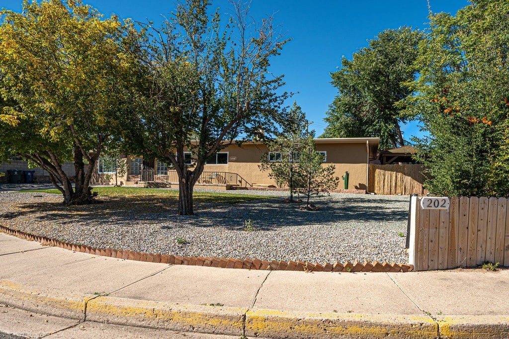 **OWNER FINANCING AVAILABLE**Tucked into the charming Casa Solana neighborhood, this single-level home blends comfort and thoughtful design across approximately 2,000 square feet. With three bedrooms and three bathrooms, including a spacious primary bedroom with an en suite, and an attached studio (+/- 650 sqft) , this property is well-suited for generational living and/or rental income. Inside, you'll find warm wood floors and recessed lighting. The total kitchen renovation features new electrical and plumbing, quartz countertops and sleek stainless steel appliances, and a breakfast nook with wood burning fireplace to make both everyday meals and entertaining a joy. Step outside to over 1,000 square feet of deck space equipped with a bar— ideal for outdoor gatherings. Mature trees line the property and a fully fenced yard provides privacy and comfort. Relax in the side gazebo or utilize it as a peaceful yoga or meditation platform. Two large storage sheds accommodate additional belongings, and a sauna completes the set of outdoor wellness amenities. This home includes a new roof coating and solar panels, rebuilt soffits and triple glazed windows, blending energy efficiency with durability. The property sits on a corner lot, offering additional space and light. Located just minutes from downtown Santa Fe, enjoy convenient access to popular shopping, dining, and cultural attractions. The home is also a stone's throw to the Plaza, the Railyard, and the Montanita Co-op. Move-in ready and kitted out to the nines, this home offers both tranquility, reliability, and connection to everything Santa Fe has to offer. Too much info to list!