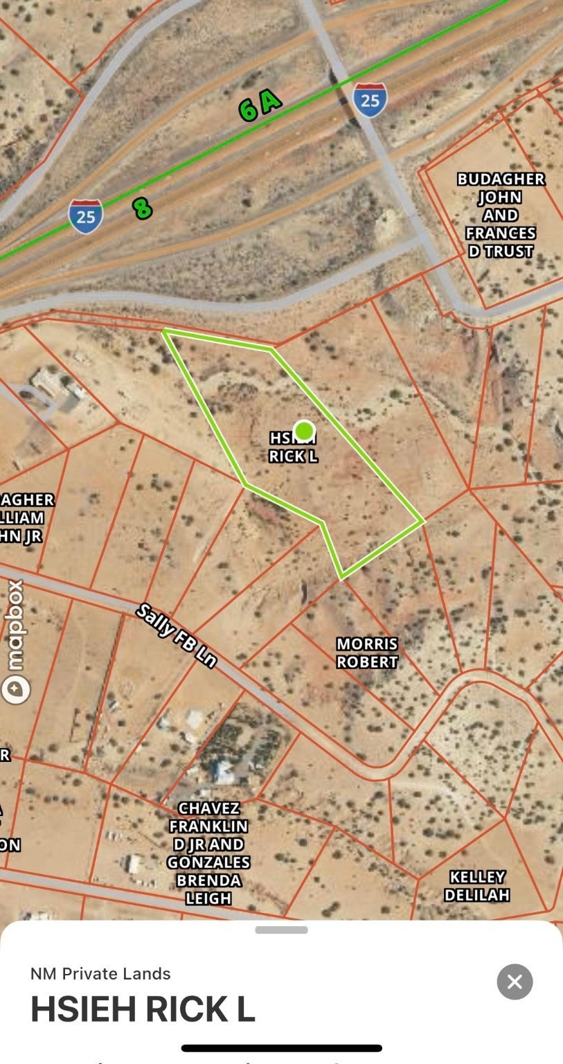 PRIME I-25 FRONTAGE at Exit 257 - this is the opportunity you've been waiting for! 6.99 acres of pure potential with stunning Sandia and Ortiz Mountain views. Zoned Rural Residential Agricultural but here's the magic -covenants allow commercial use and there are virtually no restrictions! Perfect for developers or individuals wanting space and freedom. Gently sloping terrain works beautifully for horses, livestock, or your next big project. Owner already graded a gravel access drive directly off the I-25 south East Frontage Road with established right of way per plat. Infrastructure is ready - overhead electric and phone just 1/4 mile west, nearby wells around 600 feet deep. Staked survey and CCRs available for your review. Nearly 7 acres of I-25 frontage with endless possibilities!