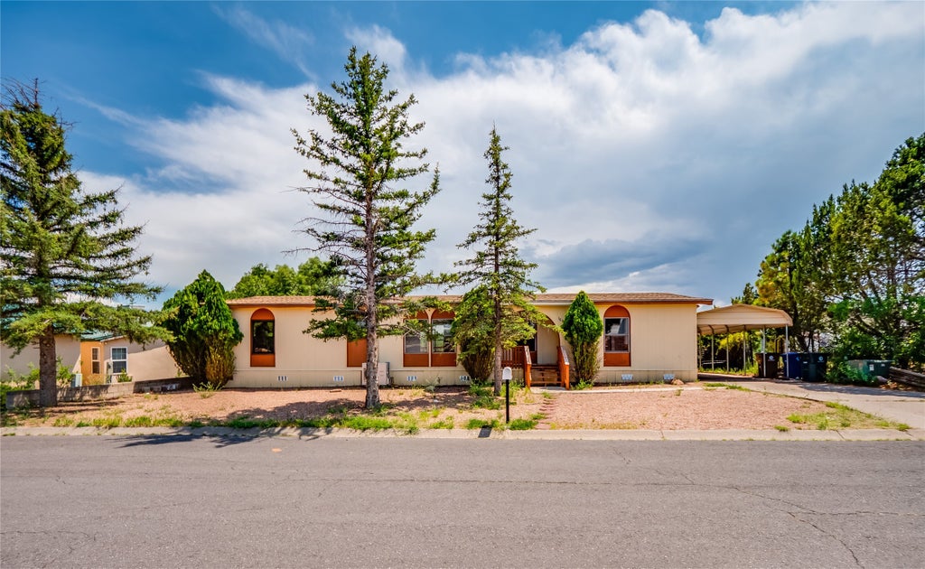 Charming Single-Story Home on the Canyon with Mountain Views in Tsikumu Village! This home offers incredible mountain views and a peaceful setting just moments from schools, trails, and stables. With a low-maintenance front yard shaded by mature trees and shrubs, this property offers curb appeal without the work. A step-up porch welcomes you into the home, where you'll find a spacious living and dining room featuring warm wood-paneled walls and newly installed lush carpet that runs throughout the interior. Adjacent to the main living area is a cozy family room with a stunning stone wood-burning fireplace, perfect for chilly nights, and sliding glass doors that lead to the expansive backyard deck. The nearby kitchen offers both charm and function with laminate wood flooring, wood cabinets with black hardware, generous counter space, and a center island with bar seating and a gas cooktop with overhead hood—ideal for both casual meals and entertaining. Off the kitchen is a laundry room complete with a utility sink, storage closets, and direct access to the back deck for convenience. The large primary en-suite bedroom features a wall of closets with elegant glass sliding doors and plenty of natural light. The attached bathroom includes a double sink vanity, a dedicated makeup vanity, a walk-in shower, and a deep soaking tub—a perfect retreat for relaxation. Down the hallway are two nice-sized guest bedrooms and a full guest bathroom with a single sink vanity and a shower/tub combo with glass door enclosures. Enjoy modern comfort with central A/C for those warm summer days. Step outside to the oversized deck that offers panoramic mountain and canyon views—an entertainer's dream and a stargazer’s paradise. The backyard also includes a large storage shed for your tools and gear, and just down the street is a community playground. If you're looking for a unique home with gorgeous views, peaceful surroundings, and easy access to outdoor adventures, this gem is a must-see!