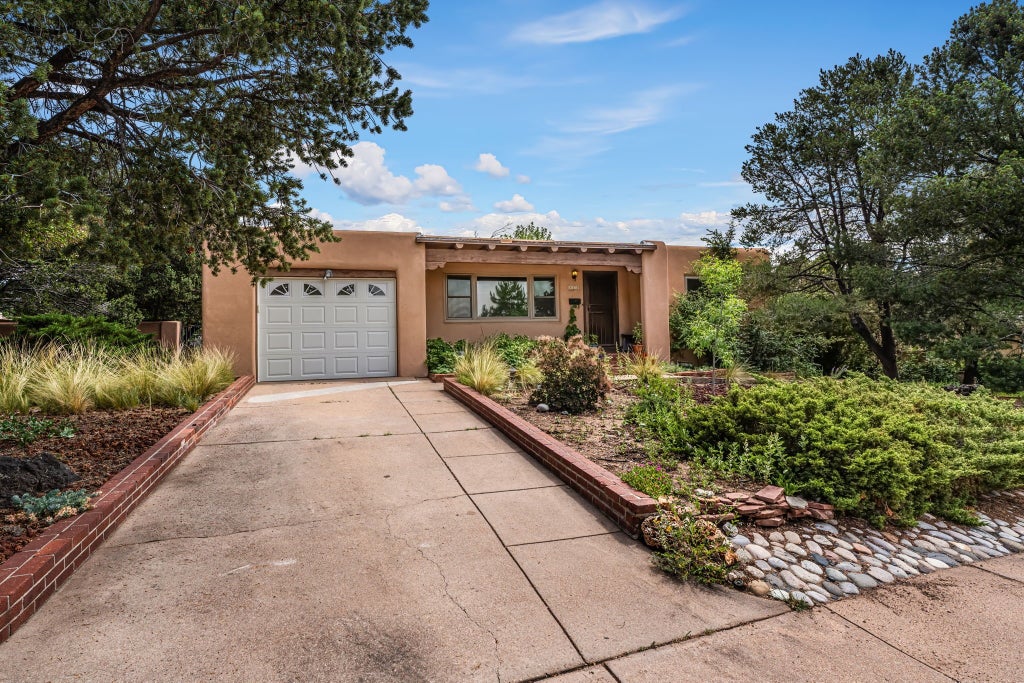 Classic Stamm-built home on a spacious corner lot in the highly desirable Casa Solana neighborhood. This well-maintained 3-bedroom, 2-bath residence features light and bright floorplan with skylights and beautiful, refinished original hardwood floors throughout. This home also boasts a huge back yard with mature trees, landscaping and turf. The home also has a bonus living space with vigas and a kiva fireplace—ideal for a den, office or 2nd family area. The home also has an enclosed sunporch offers flexible use as a studio, reading room, or creative workspace. Recent updates include washer, dryer, dishwasher, garage door opener, sewer line, upgraded windows and newer roof. The huge corner lot offers a great deal of outdoor space perfect for family time or entertaining. The home includes an attached 1-car garage with direct access. The Casa Solana neighborhood is most sought after and is located minutes from the Santa Fe Plaza, Railyard District, Casa Solana community pool, and Casa Solana Shopping Center/La Montanita Co-op, and the Frank Ortiz dog park. It is also Easy access to St. Francis Drive, parks, trails, and shopping. A rare opportunity to own a classic Santa Fe STAMM home with modern upgrades and flexible living spaces. Ideal for full-time residents, artists, or investors seeking long-term value in a prime location.