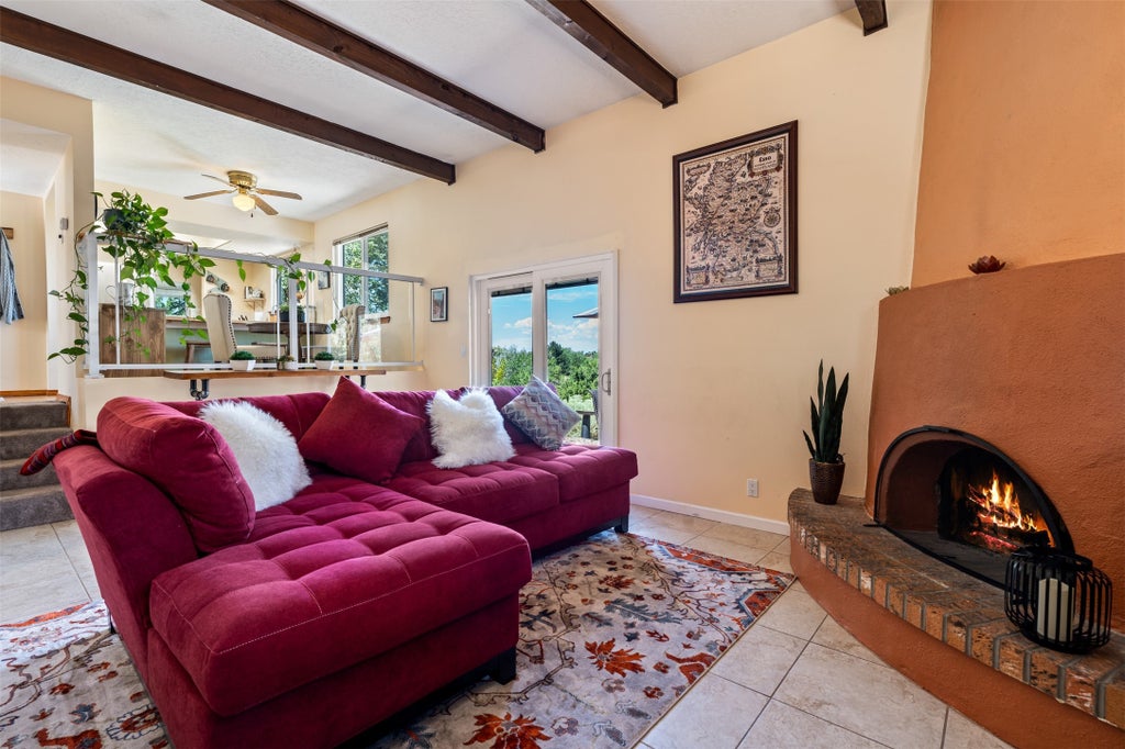 Centrally located, this pristine and move-in ready, two-level, single-family home is only about 10 minutes from the Historic Santa Fe Plaza. Situated on a generous 0.24-acre lot, the 1,734 sq ft residence offers 3 bedrooms—all upstairs—and 3 bathrooms (2 full, 1 half). The spacious guest bedrooms feature deep closets and pleasant views, while the primary bedroom includes a walk-in closet and an ensuite full bathroom. The living room features exposed beams and a wood-burning fireplace, adding warmth and character to the space. Recent upgrades include new luxury vinyl plank flooring, new carpet in bedrooms, new energy-efficient Pella windows, and a new membrane (TPO) roof with a transferable warranty for added peace of mind. The home also features updated forced-air heating and central refrigerated air conditioning for year-round comfort. The attached 2-car garage includes a bonus area—perfect for a small workshop or additional storage. The spacious backyard is ideal for entertaining and showcases amazing sunsets, while the open space directly behind the property provides easy access to parks, walking paths, and biking trails. Conveniently located near grocery stores, parks, and amenities, this move-in-ready home combines comfort, style, and location.