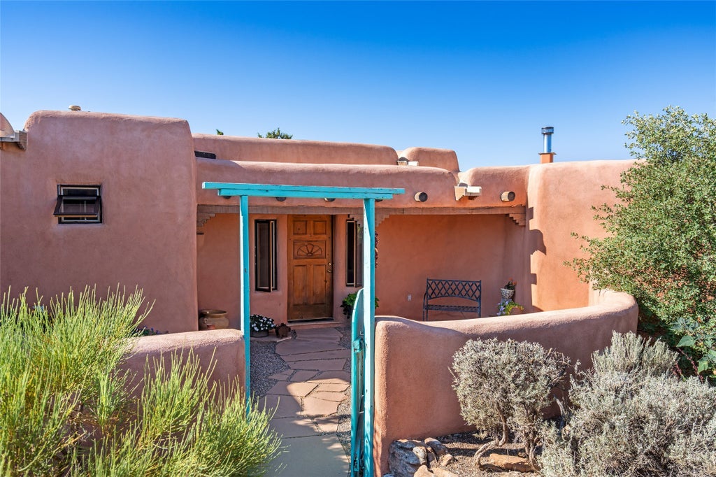ADOBE HOME IN ELDORADO! Rarely offered in Eldorado, this true adobe home captures the essence of authentic Santa Fe style on 1.3 acres with expansive mountain views. Featuring 3 bedrooms and 2 baths, the residence is rich with Southwestern character, showcasing vigas, beams, and warm adobe walls throughout. A welcoming courtyard and garden provide a serene outdoor retreat, while radiant heating ensures comfort in every season. Set in the sought-after Eldorado community, residents enjoy miles of scenic trails, a community pool, tennis courts, and a vibrant community center—all just minutes from downtown Santa Fe. This rare adobe treasure combines timeless craftsmanship with modern livability, offering the best of both tradition and convenience in a setting that celebrates Northern New Mexico’s natural beauty and community spirit.