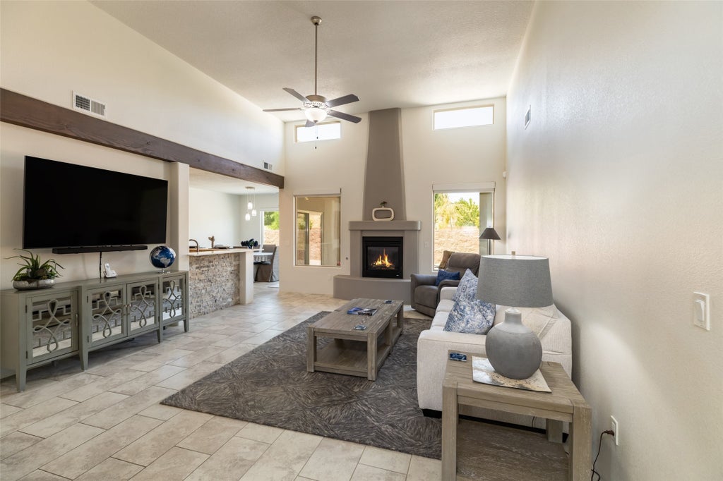 Experience the perfect blend of comfort, style, and location in this beautifully maintained home in the award-winning La Pradera community—named 2025 Santa Fe’s Most Livable Neighborhood by the Haciendas Parade of Homes. This 4-bedroom, 2-bath home offers thoughtful updates and a layout designed for both functionality and relaxation. Inside, you’ll find a freshly painted interior (2025) and new laminate flooring in the guest rooms (2025), enhanced by upgraded light fixtures and ceiling fans throughout. The spacious primary suite boasts an oversized walk-in closet and a large luxurious shower with a rain shower head, while another guest bedroom includes its own walk-in closet. The kitchen features stainless steel appliances, including a quiet KitchenAid dishwasher (2023). A laundry room with sink and cabinetry adds convenience. The 2.5-car garage is a standout with a MyQ smart system, overhead storage unit, custom workbench, and extra storage bump-out. Enjoy year-round comfort with a gas fireplace featuring new components (2025) and peace of mind with a security system and ring cameras (buyer activation required). Outside, the fully landscaped yard showcases mature trees, including a fruit-bearing pear tree, and inviting outdoor spaces. Relax under the oversized covered patio, gather around the flagstone patio with fire pit table (conveys), and take in the surrounding green space. This property backs to open greenery and offers an open space treed lot on one side for added privacy, with more open space in front and behind. Additional perks include a 70” TV with soundbar that conveys, roof maintenance and upgrades (2024), and access to La Pradera’s incredible amenities—50% open space, parks, and scenic walking trails throughout. The entire exterior has just been painted with high-quality elastomeric stucco paint (2025), designed to be waterproof and durable. The work comes with a transferable warranty, giving peace of mind to the next owner.