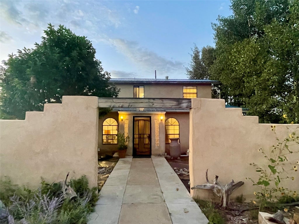 Beautiful farm with 10.87 scenic acres and a fully updated home close to Las Vegas, New Mexico. Light filled with views in every direction of the gorgeous Sangre de Cristo Mountains. As you approach the home, big aspen trees provide privacy. Park in the two car garage or large carport, then enter the home through a beautifully landscaped courtyard, and notice the grace of the arched windows. Downstairs the home has gleaming tile floors with radiant in floor heat, a large master bedroom with walk in closet and en suite bathroom, a large open concept living room with wood stove dining room and kitchen, two pantries, a large laundry room, half bath, and a full mud room. Upstairs has two bedrooms, a balcony, and a bathroom. The back patio has a spa atmosphere with a hot tub, sauna, and plunge pool - rejuvenate while taking in the spectacular views! Apples, grapes, and blueberries as well as an updated barn, shed, and chicken coop along with horse fencing as well as raised garden beds and rain barrels makes this haven ready for your farming dreams! Updates include new water softener, new dish washer, new refrigerator, new washer and dryer, new boiler-tankless water heater for radiant floor heat, newer Propanel roof, well upgrades, new carport, walkways, and landscaping. All this scenic peace and quiet yet close to town, university, and recreation of Hermit's Peak and lakes does not come available often, so schedule a showing now.