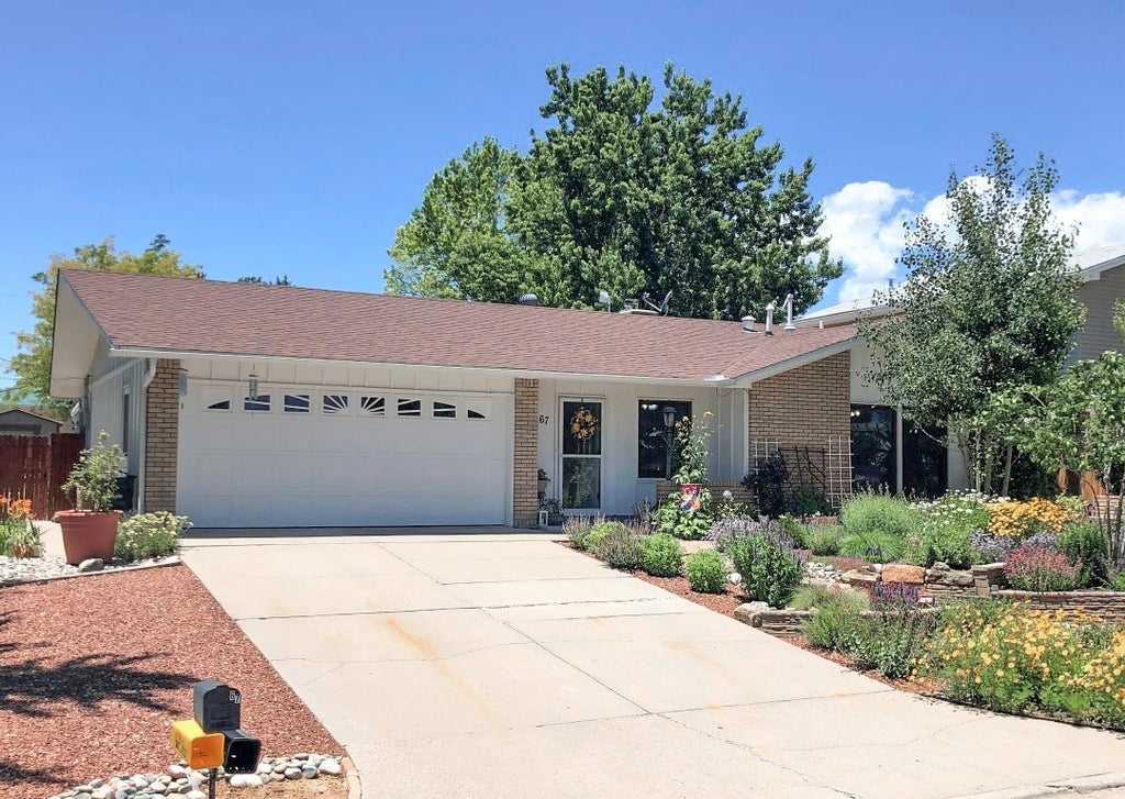 Welcome to this charming White Rock home, where charm and comfort come together. Be greeted by lush landscaping, perennial gardens, and inviting curb appeal. Inside, the home has been updated with luxury hardwood flooring and fresh paint throughout. The living room is filled with natural light and features a cozy wood-burning fireplace. A fireplace insert (stored in the garage) comes with the home. The kitchen offers warmth and character with its two-tone wood cabinets, a pantry, and a conveniently located laundry room. A bright sunroom adds a versatile space that is large enough for a dining suite, office area, or hobby space. The sunroom was updated in 2024 with new windows and exterior siding. From the sunroom, step outside to a spacious cobblestone-style patio with a pergola, a lush lawn, and plenty of room to entertain. The yard includes a sprinkler system, a fenced garden area, and a designated play space. The play structures convey with the property. Back inside, the primary bedroom features its own en suite bath, while two additional bedrooms share a well-appointed hall bath. The home has central air conditioning and a two-car garage. Schedule a private showing today!